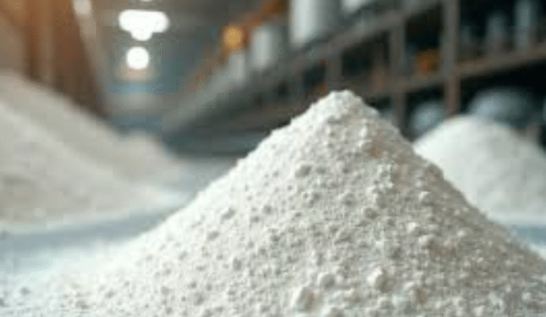 Piles of industrial quicklime (CaO) in a warehouse, ready for steel, chemical, and environmental applications